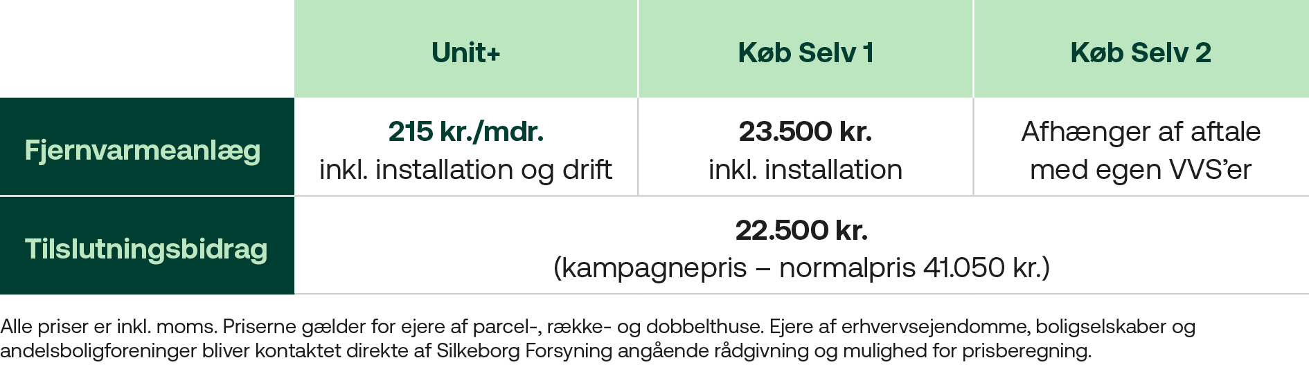 OBS: Du betaler først tilslutningsbidraget og for dit fjernvarmeanlæg, når du er tilsluttet og kan tænde for fjernvarmen.