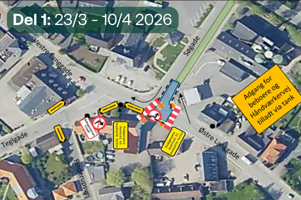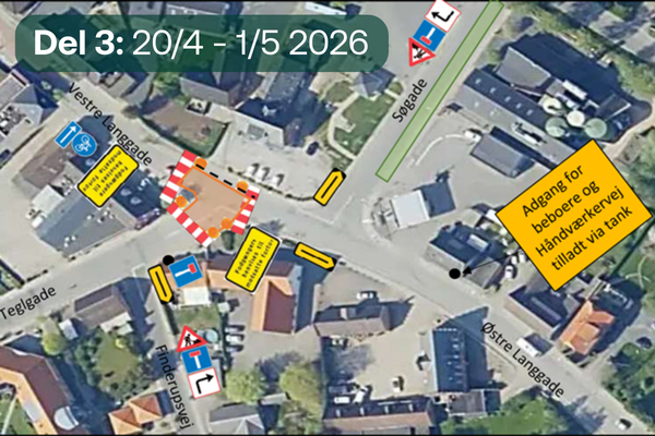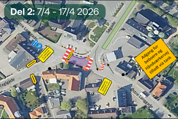 Vestre Langgade spærres, med omkørsel ad Markedsgade og Teglgade.
